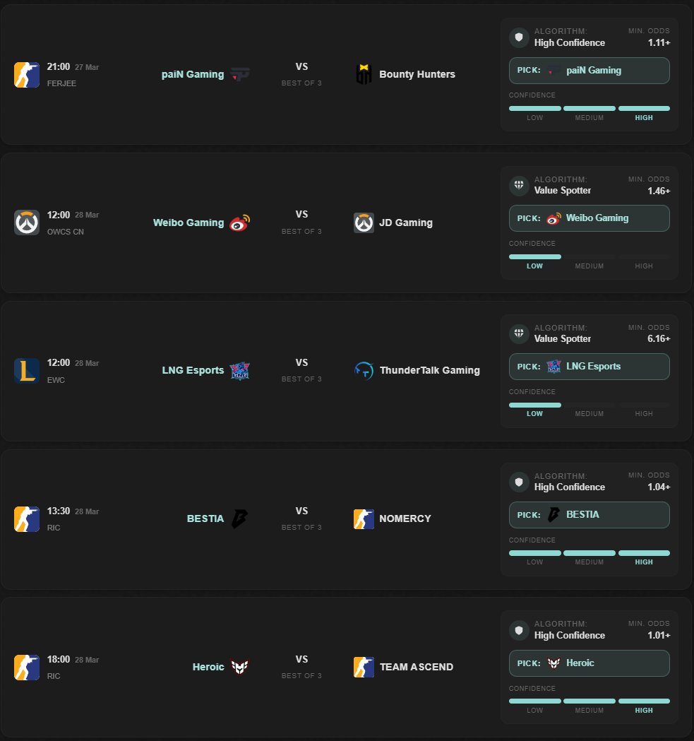 Ensitics.io as the first filter. Check the feed before each match card. High Confidence and Value Spotter picks tell you which matches have a meaningful signal. This narrows your focus from a full card of matches to the 2–4 that warrant attention.